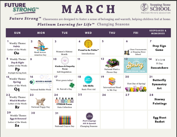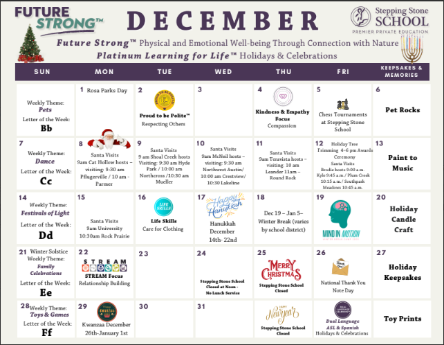 Stepping Stone School is committed to the convenience of our families. We close only for the following holidays: